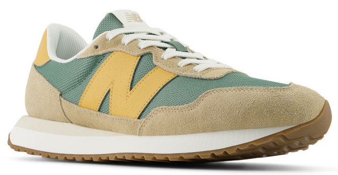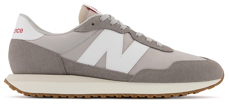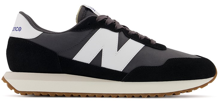 Taking design cues from 1970s archival favorites, New Balance’s® 237 melds heritage influences with a modern outlook. The 237 utilizes an EVA midsole, herringbone outsole and streamlined upper as a classic launching point, with modern flourishes like oversized N branding, extended midsole length, and gator inspired foxing and mudguard offering a modern take on the decade when running shoes truly made their mark for the first time. Experimental in spirit yet easily accessible, the 237 is a deceptively simple, contemporary statement piece.