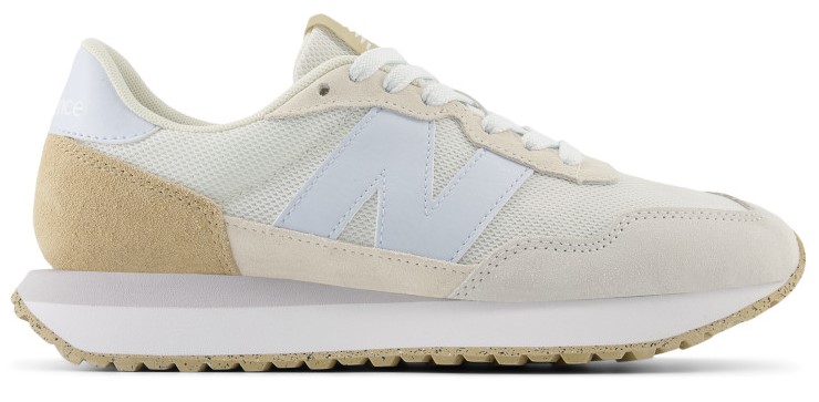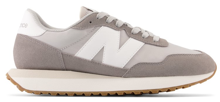 Taking design cues from 1970s archival favorites, New Balance’s® 237 melds heritage influences with a modern outlook. The 237 utilizes an EVA midsole, herringbone outsole and streamlined upper as a classic launching point, with modern flourishes like oversized N branding, extended midsole length, and gator inspired foxing and mudguard offering a modern take on the decade when running shoes truly made their mark for the first time. Experimental in spirit yet easily accessible, the 237 is a deceptively simple, contemporary statement piece.